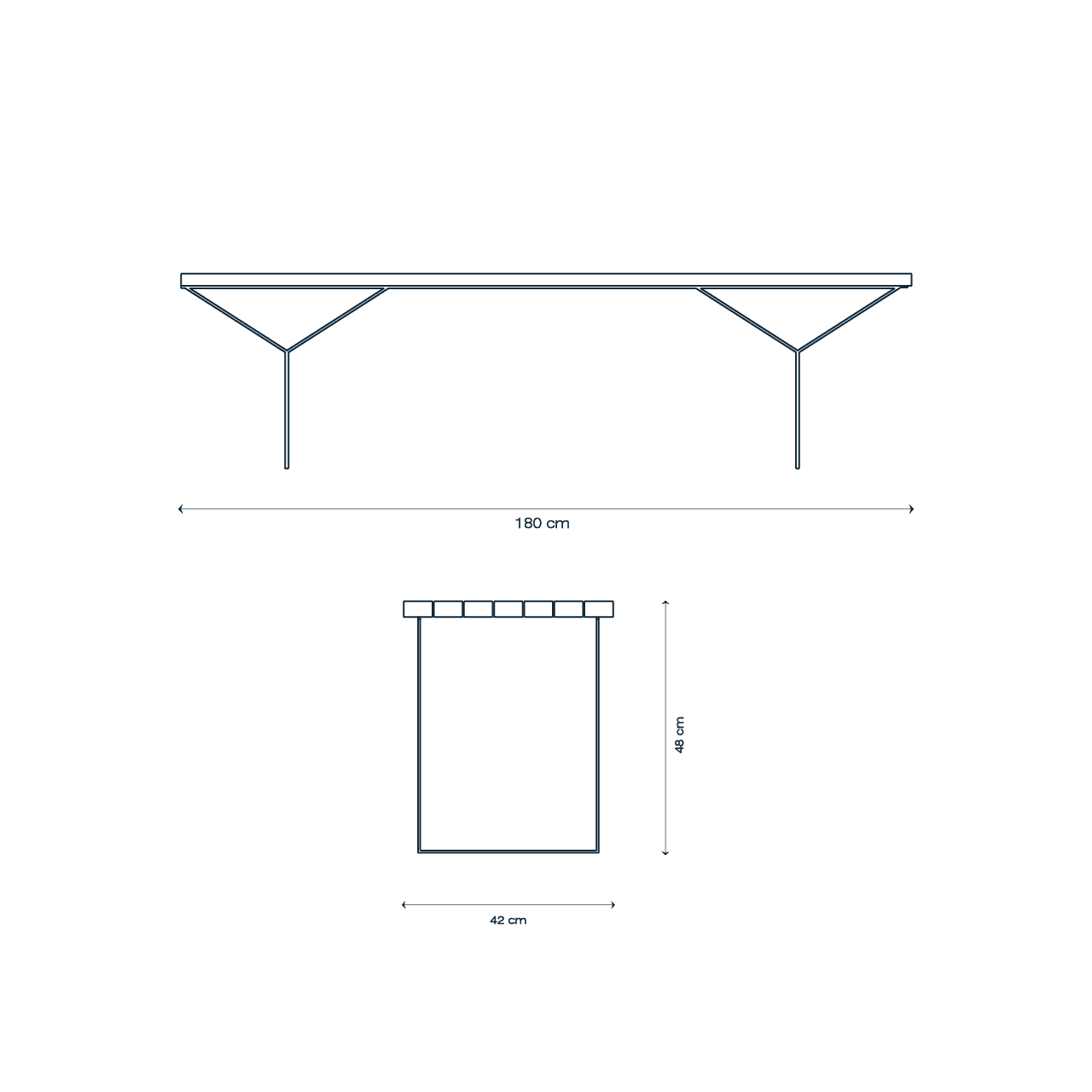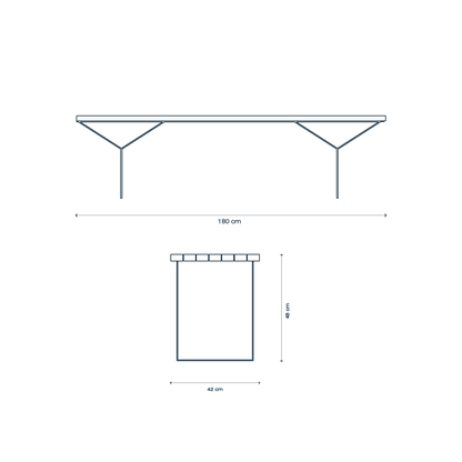 Ancho: 195 cm x Alto: 48 cm x Profundo: 42 cm.