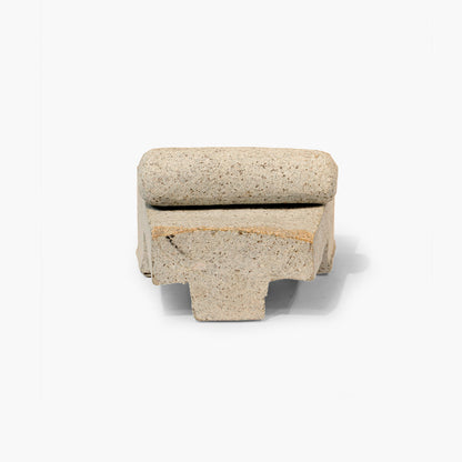 Este accesorio está esculpido en piedra arenisca de Barichara. Cada obra refleja la destreza ancestral que se ha heredado por generaciones. Cada pieza es única, fabricada de manera artesanal, y los patrones irrepetibles de cada veta tallada por la naturaleza a lo largo de milenios añaden un valor exclusivo y una capa de singularidad a cada una de estas expresiones artísticas, que a su vez cuentan historias que se entrelazan con el paisaje y la historia colombiana.